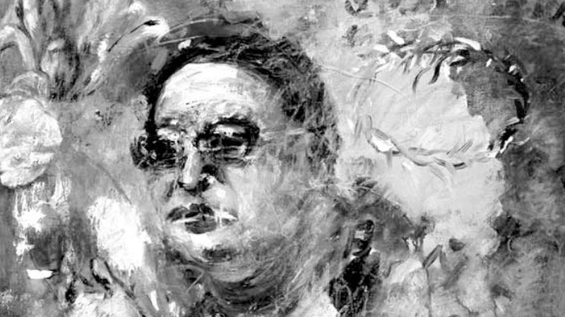 ▲吴震寰油画——鲜花和剑:诗人俞心樵