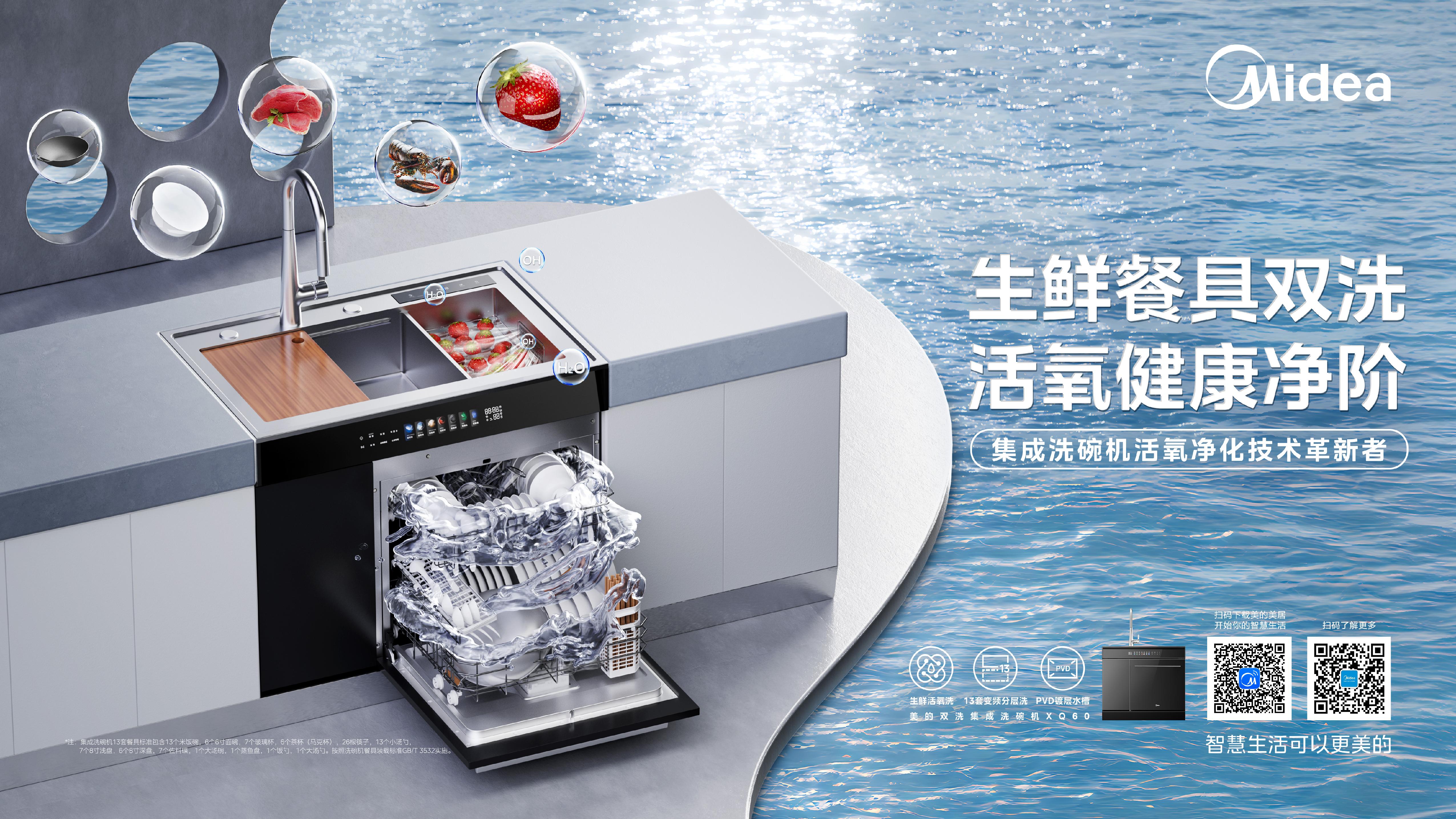 在技术创新方面,美的推出全新XQ90款洗碗机搭载生鲜净洗水槽,应用美的独家生鲜活氧洗技术,除菌率高达99.99%,有效去除98.4%的农药残留及97.4%的瘦肉精,全面守护用户入口安全。