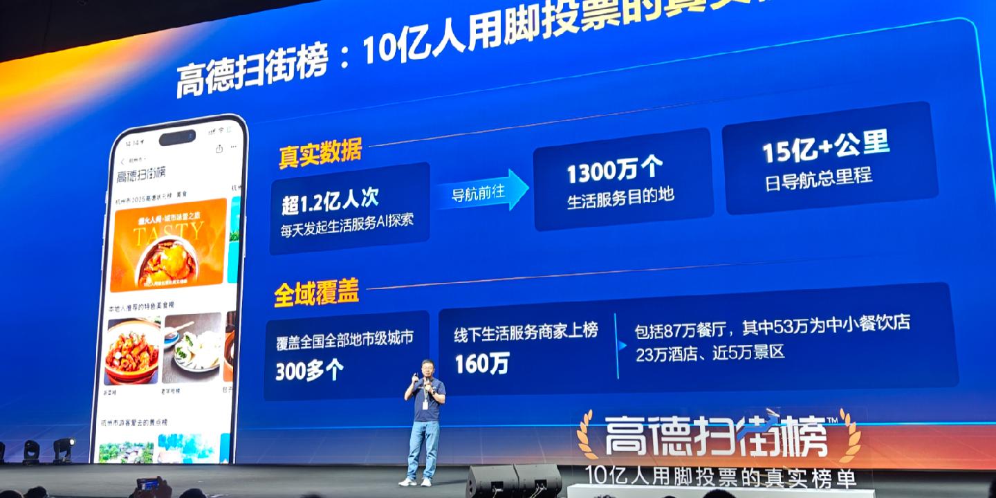 高德扫街榜根据近一年5132万人13亿次导航228亿公里计算筛选出用户多次反复前往的118万家店铺,李刚称,这是通过阿里通义千问大模型和空间智能方式梳理出的用户行为数据和真实评价。